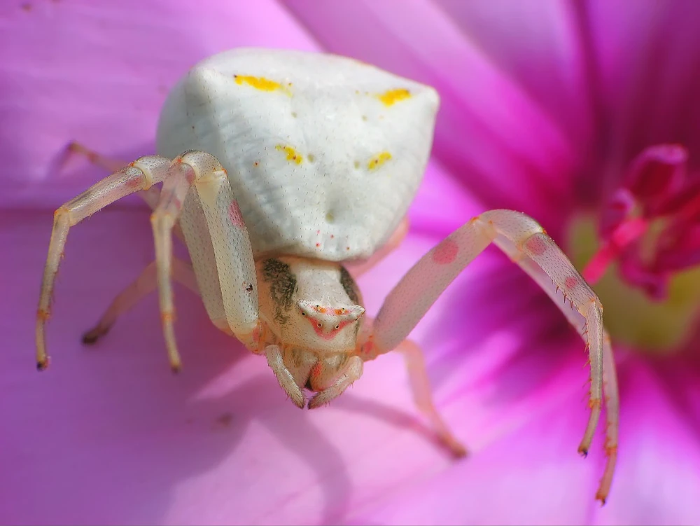 Esta araña sicarius está relacionada con las arañas reclusas y es muy venenosa, su mordida puede resultar letal, pero existen muy pocos registros de humanos mordidos por este tipo de arácnido. La arañas cangrejo del género Thomisidae, son unas extraordinarios arácnidos con forma de cangrejo, que no tejen tela, sino que acechan a escondidas.