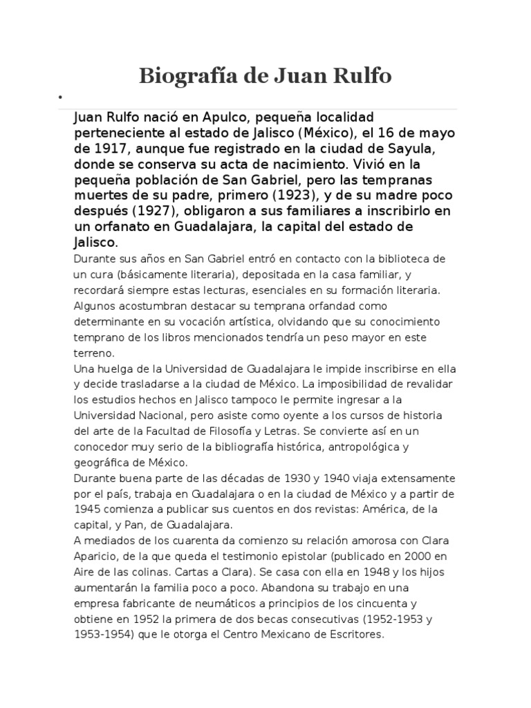 Biografía de Juan Rulfo PDF México Poesía