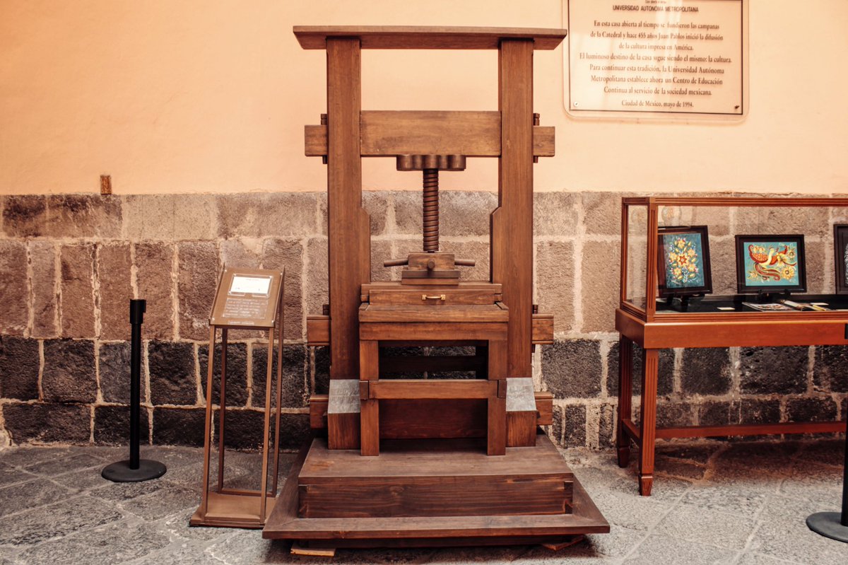 Universidad Autónoma Metropolitana. The House of the First Printing Press in the Americas ( Spanish: Casa de la Primera Imprenta de América) at the corner of Moneda and Licenciado Primo Verdad streets in Mexico City was the home of the first printing press/print shop in the New World. [1] The printer Juan Pablos oversaw the printing of at.