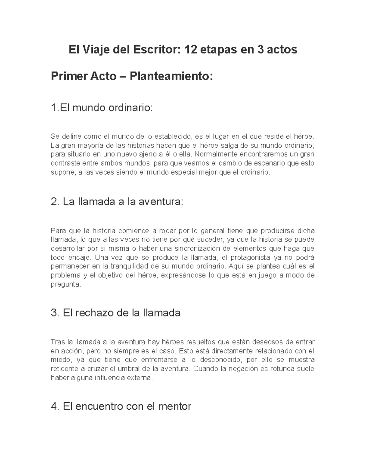 El Viaje del Escritor libro El Viaje del Escritor 12 etapas en 3 actos Primer Acto Studocu