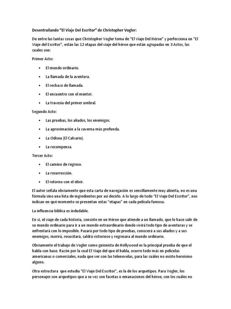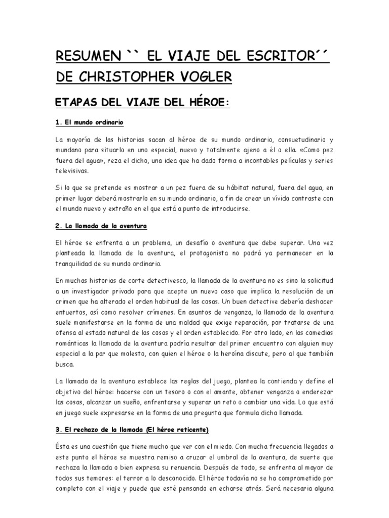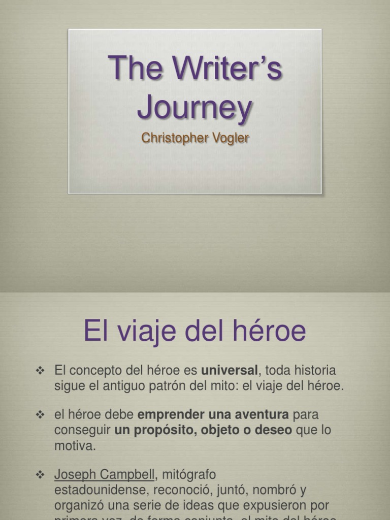 Resumen. El viaje del escritor se ha convertido en un auténtico clásico y en obra de referencia entre los guionistas de todo el mundo. Miles de escritores de reconocido prestigio, cineastas, guionistas y estudiantes de numerosos países han comprobado ya el potencial creativo de las propuestas de Christopher Vogler, ya que éstas van más.