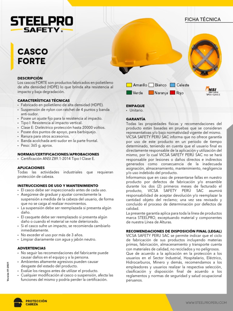 Ficha Técnica Casco Forte Steelpro PDF Seguridad y salud ocupacional