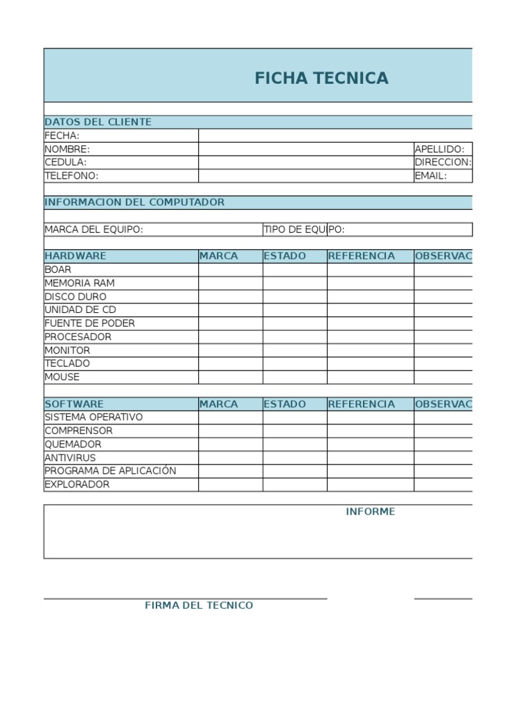 Formato De Ficha Tecnica Word
