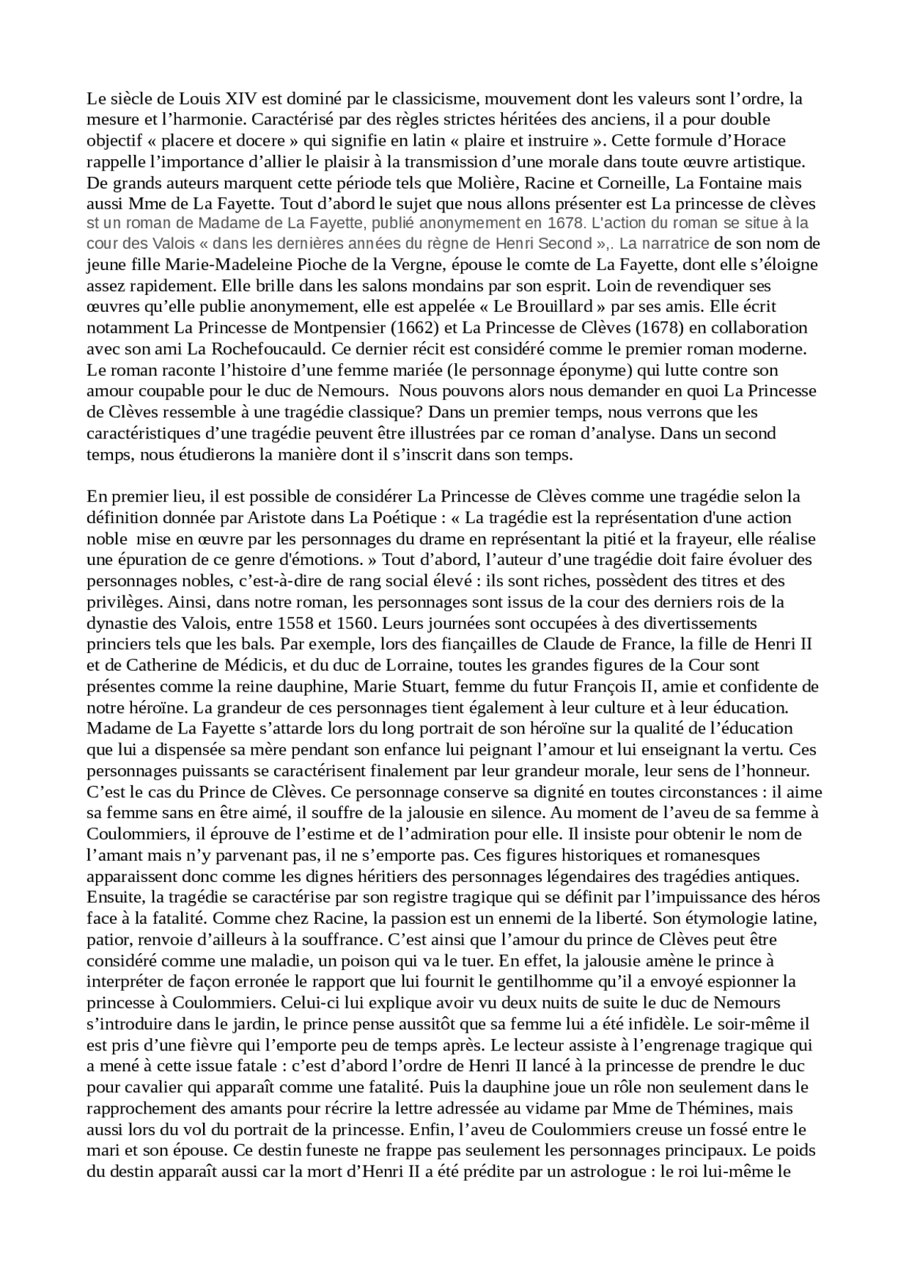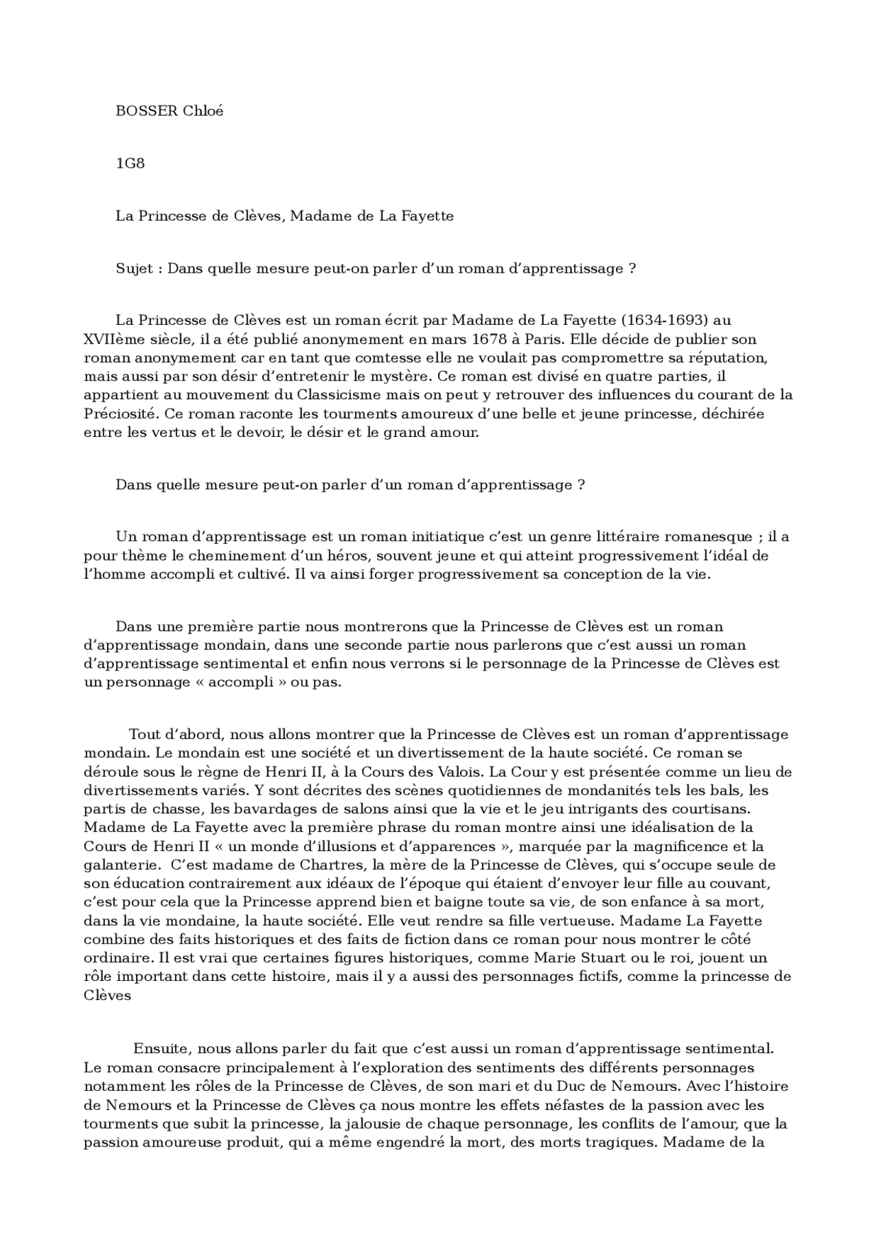 Dissertation la princesse de clèves Dissertation Français Docsity