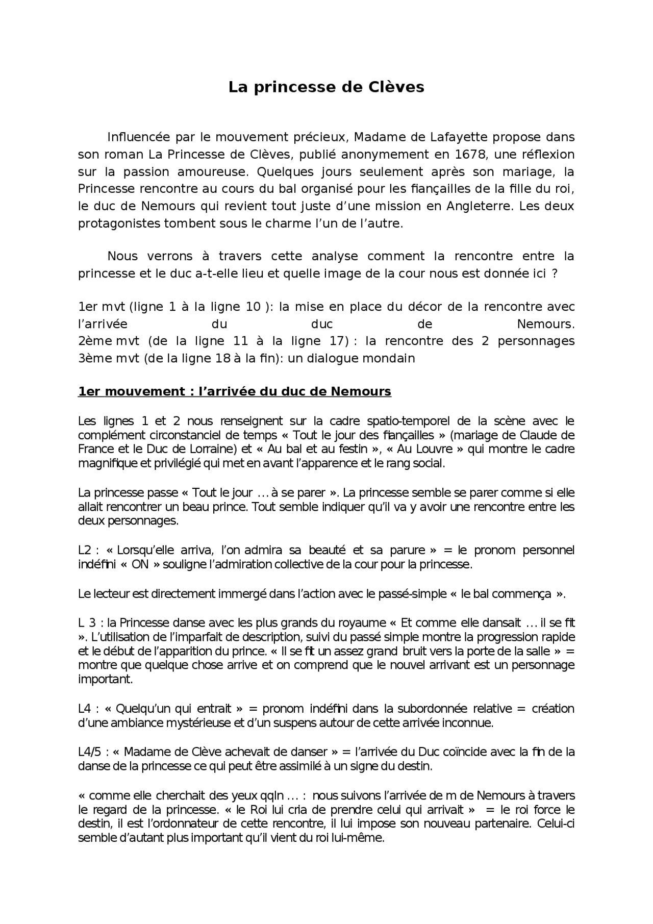 Recherche parmi 297 000+ dissertations. Par Hicham Azouagh • 7 Avril 2022 • Commentaire d'oeuvre • 433 Mots (2 Pages) • 846 Vues. Page 1 sur 2. La princesse de cleve est un roman historique qui a etait ecris dans le courant du 17 eme siecle et publier anonymement eu 1678 par une femme de lettre du nom de Mme de lafayette qui a aussi.