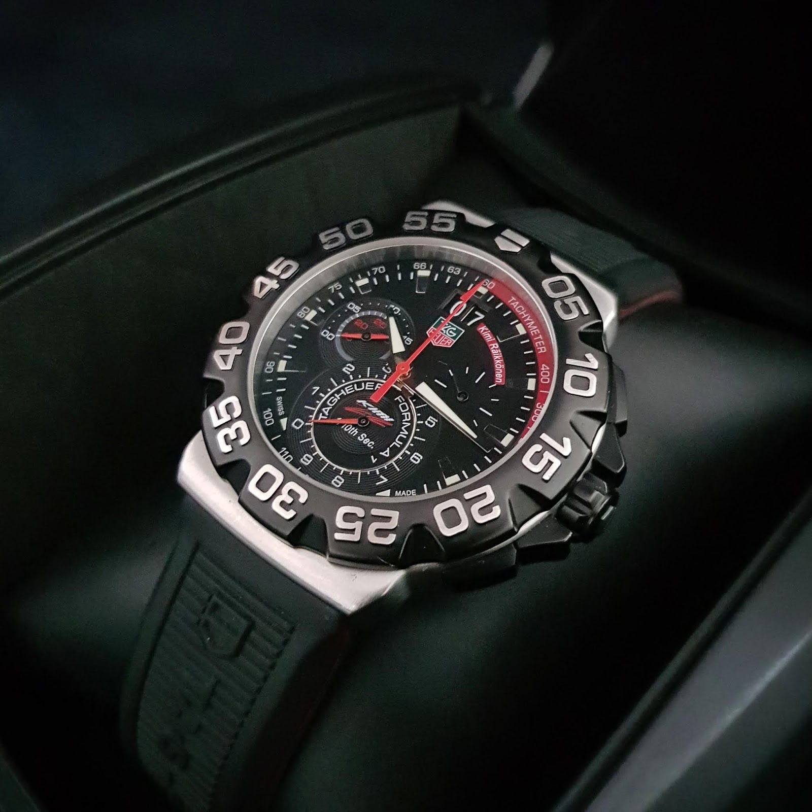 TAG Heuer Kimi Räikkönen Formula 1 Limited Edition. I had the opportunity to interview him back in 2017. Naturally, I had to ask about his first watch and car (the latter being a LADA).. Like most of the TAG Heuer Formula 1 watches of that era, it had a nice, linear look. The 9 o'clock position featured a twin-handed, semi-circular.