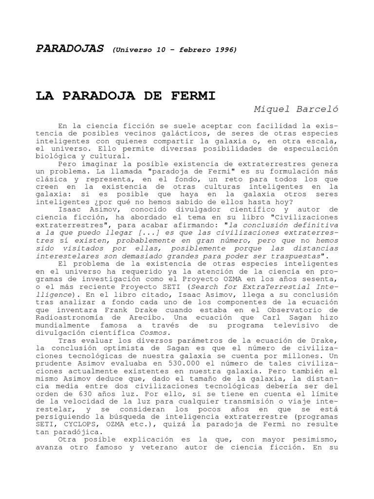 Art1996 La Paradoja de fermiMiquelB PDF Ciencia ficción Astronomía