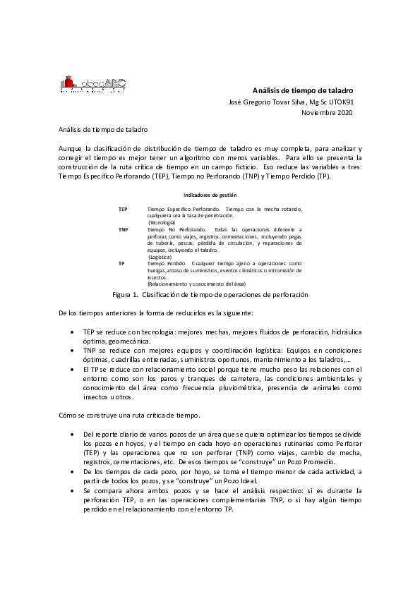 (PDF) Análisis de tiempo de taladro Jose Gregorio Tovar Silva Academia.edu
