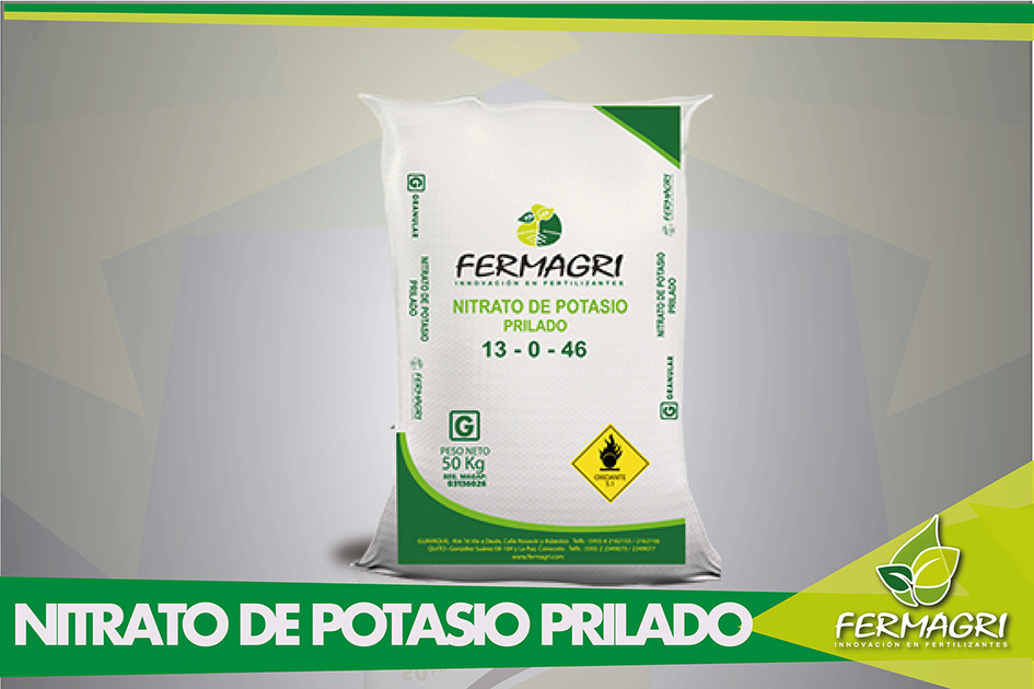 El nitrato de potasio (KNO3) es una fuente ideal de potasio para fertilización de árboles frutales, cultivos, flores y hortalizas. Aunque hay muchos otros fertilizantes en el mercado, el nitrato de potasio es el que entrega los macronutrientes a la planta en forma más concentrada. La fórmula del nitrato de potasio es la siguiente: un.