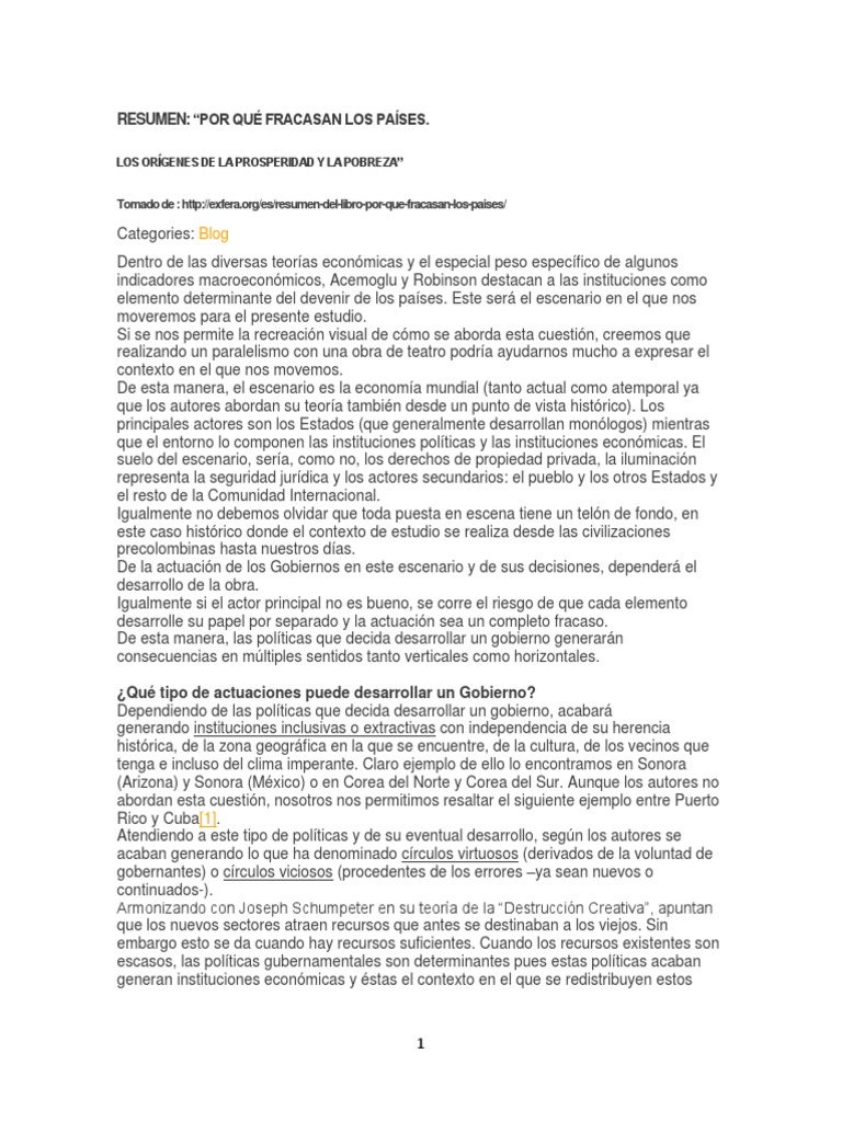 Por Qué Fracasan Los Países. Resumen PDF Institución Crecimiento económico