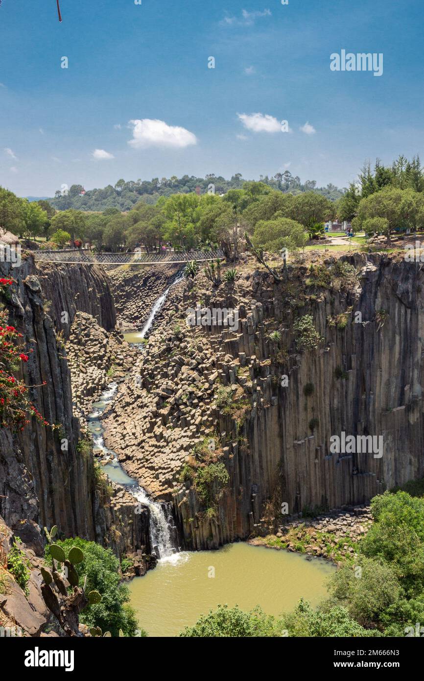 Los Prismas Basalticos en Hidalgo, México. Una cascada sobre prismas basálticos. Por si le
