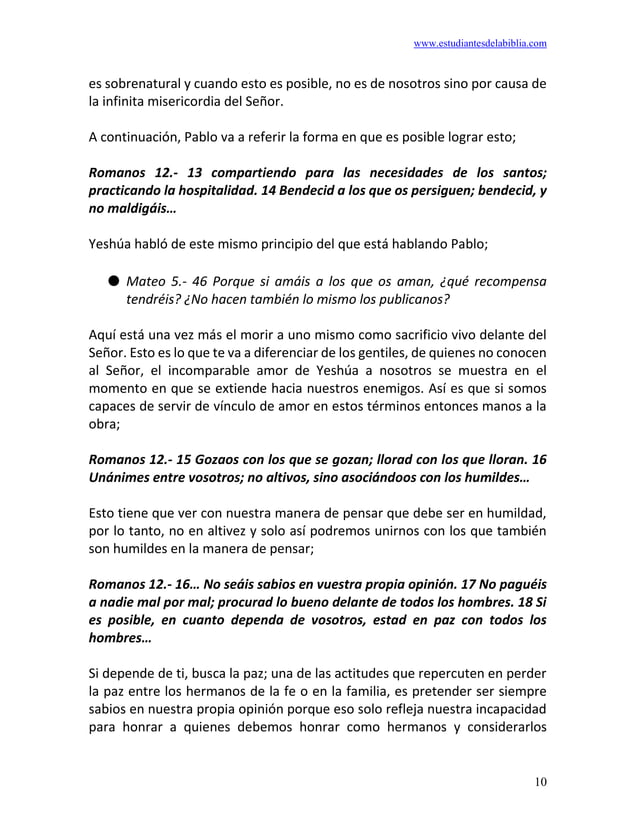 Romanos 12 - Viviendo la Vida Cristiana A. El Fundamento para un Vivir Cristiano J.B. Phillips tiene una sobresaliente y memorable traducción de Romanos 12:1-2: . Con los ojos bien abiertos hacia las misericordias de Dios, Yo te ruego, hermanos míos, como un acto de adoración inteligente, que le den a Él sus cuerpos, como un sacrificio vivo, consagrados a Él y aceptables delante de Él.