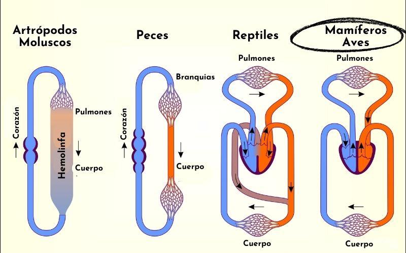 Las aves son animales que presentan respiración pulmonar, circulación doble y completa. La circulación doble es una característica de los animales homeotérmicos y ocurre cuando la sangre atraviesa el corazón dos veces. Cuando decimos que el movimiento es completo nos referimos a que la sangre venosa no se mezcla con la sangre arterial. De esa forma, podemos concluir que la sangre en el.